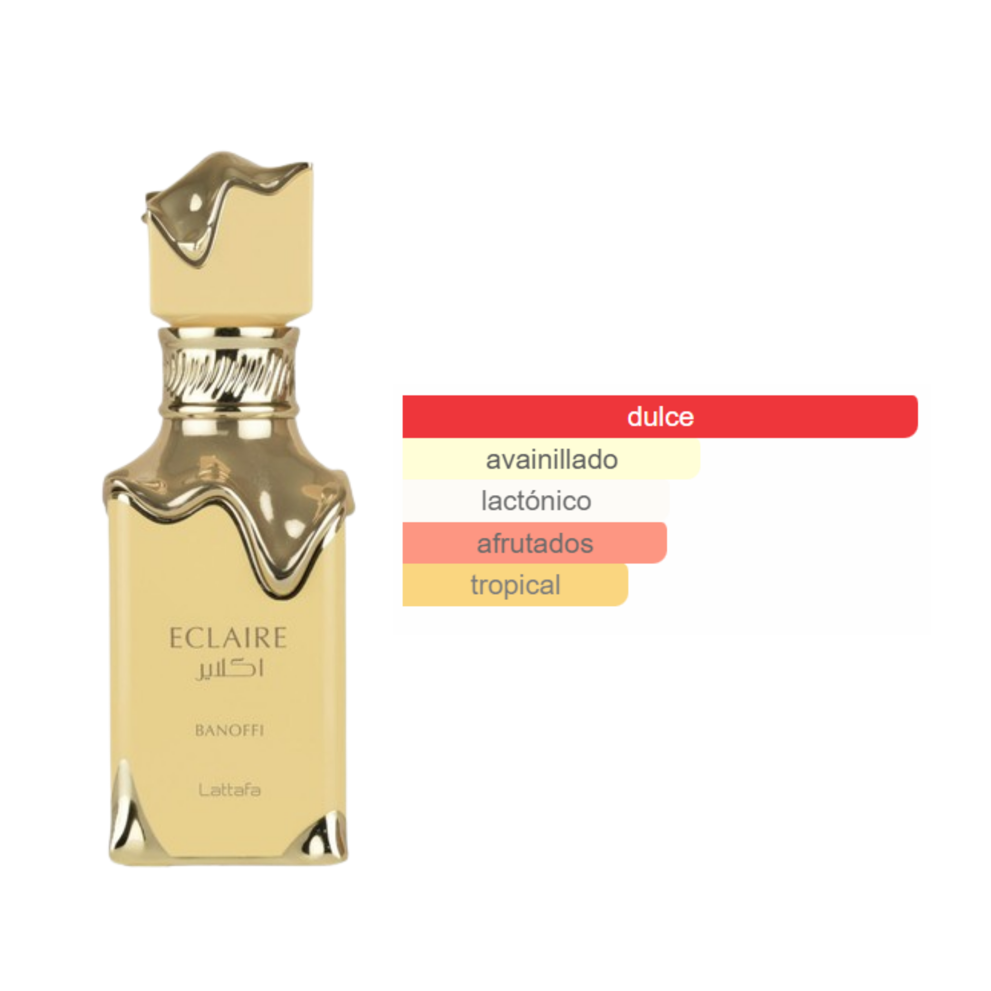 Eclaire Banoffi es un postre convertido en perfume. Dulce, cremoso y absolutamente irresistible, esta fragancia combina banana cream y dulce de leche con un corazón suave de vainilla y crema batida, para cerrar en un fondo goloso de praliné, galleta crujiente y almizcle.